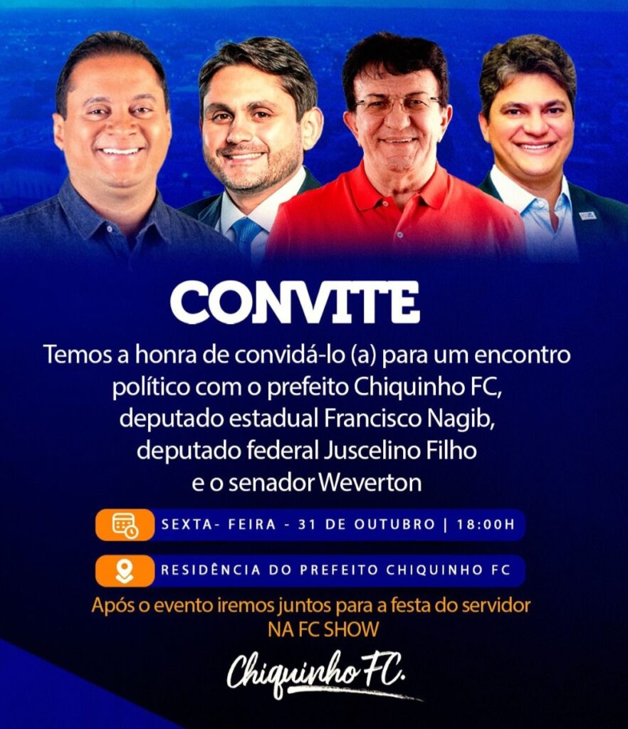 No convite, Chiquinho FC avisou que após o encontro político todos irão para a festa do servidor que acontece na FC Show.