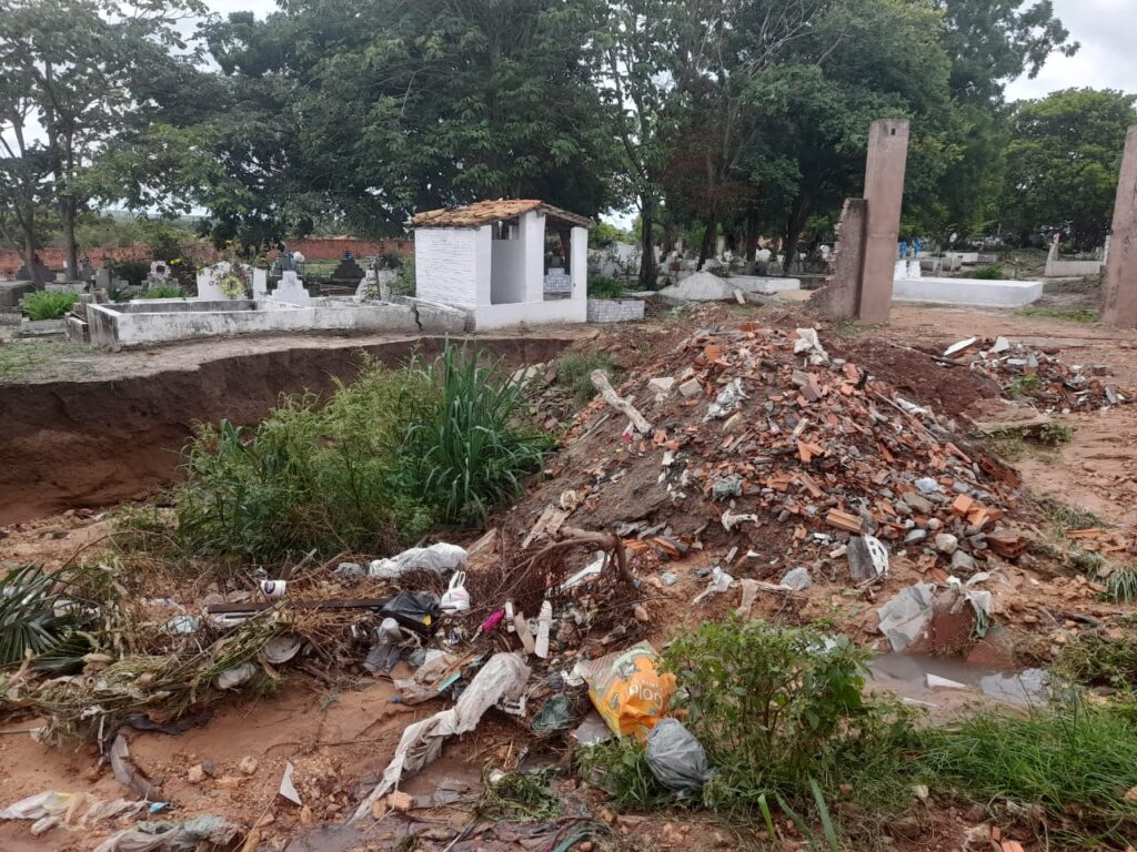Hoje, o cemitério do Cajueiro está sendo invadido pelas águas das chuvas e os trilhos da ferrovia podem provocar um grave acidente com o trem descarrilhando.