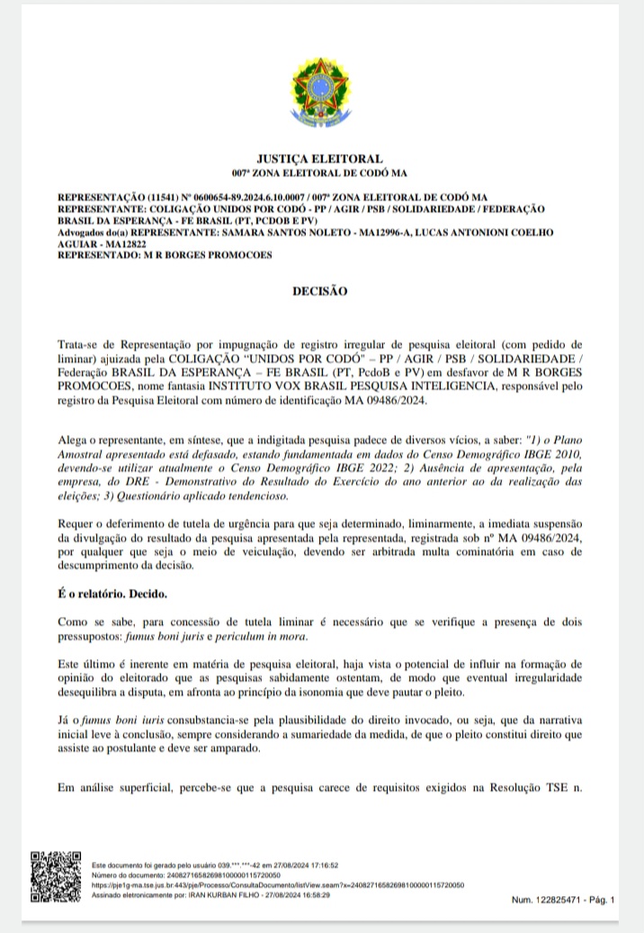 Meninos, eu vi o resultado de uma pesquisa eleitoral realizada em uma cidade da região dos Cocais. O Censo ocorreu nos dias 19, 20 e 21. O resultado foi divulgado na quinta-feira (22). Dizem que foi o Governo do Estado do Maranhão que fez, diem. A empresa é ligada a um deputado estadual do Piauí.