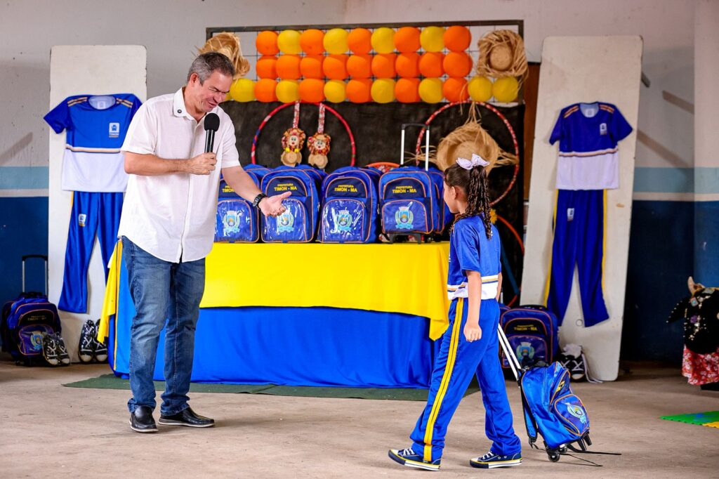 Nesta quinta-feira (12), o prefeito de Timon, Rafael Brito, entregou kits de fardamento escolar aos alunos da rede municipal. A ação, coordenada pela Prefeitura de Timon, por meio da Secretaria Municipal de Educação (SEMED), começou em dez escolas da cidade, sendo cinco atendidas no turno da manhã e outras cinco à tarde.