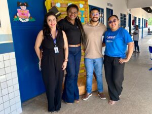Durante a visita, os mobilizadores Joane Cristina (Educação), Kelrison Santos (Núcleo de Cidadania de Crianças e Adolescentes), Tarsila Noronha (Água, Saneamento, Higiene e Resiliência Climática) e Samia Caroline (Equidade Étnico-Racial), acompanhados pela equipe da SEMED, realizaram um monitoramento e mapeamento das necessidades e oportunidades da comunidade escolar.